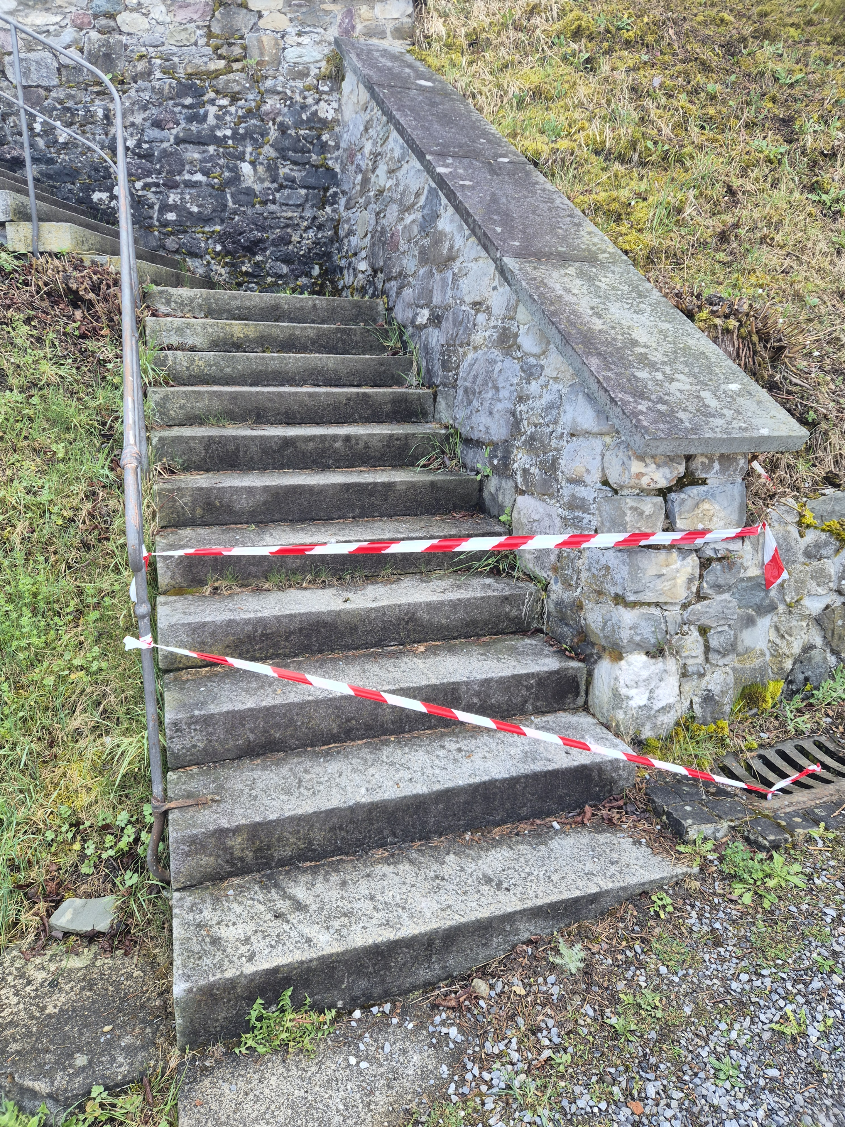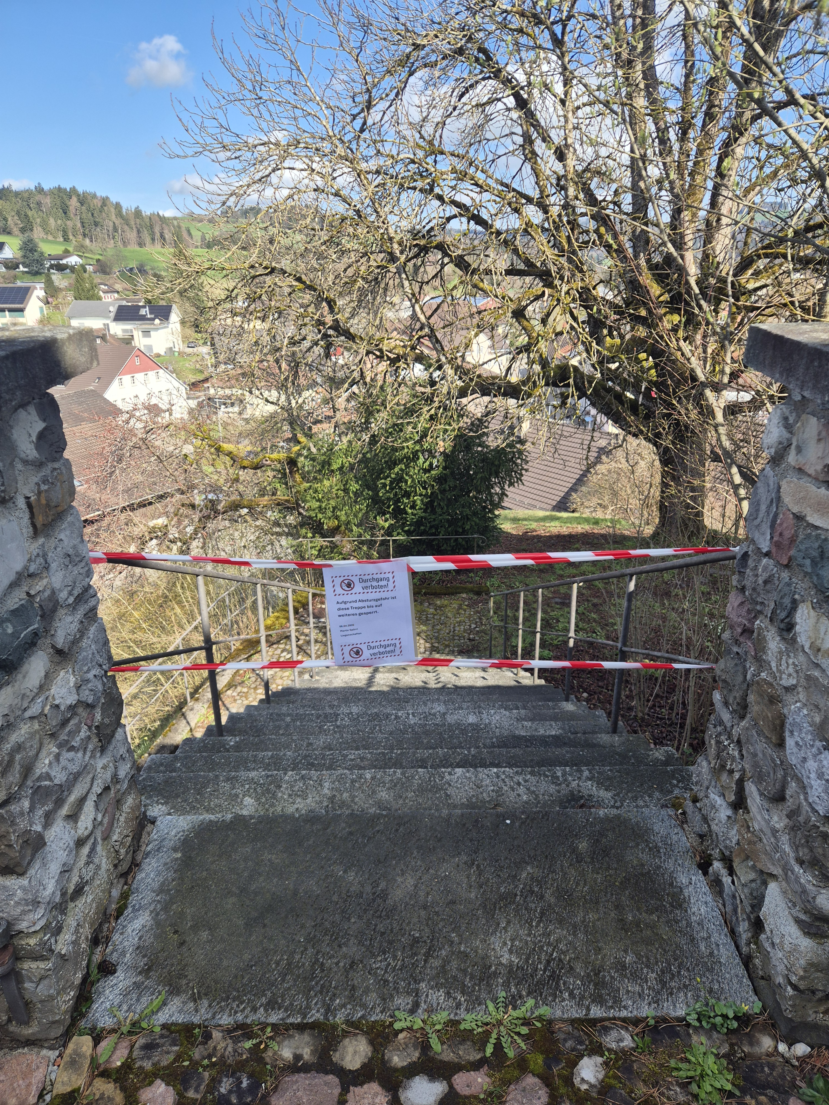 Daraufhin hat Martin Spörri, Ressortleiter Liegenschaften, in Zusammenarbeit mit unserem Sicherheitsbeauftragten (SIBE) diesen Zugang zur Kirche sowie zu den Aussichtsbänken bis auf Weiteres gesperrt. Sobald die Sanierung abgeschlossen und die Sicherheit wiederhergestellt ist, wird der Weg zeitnah wieder für die Öffentlichkeit freigegeben.