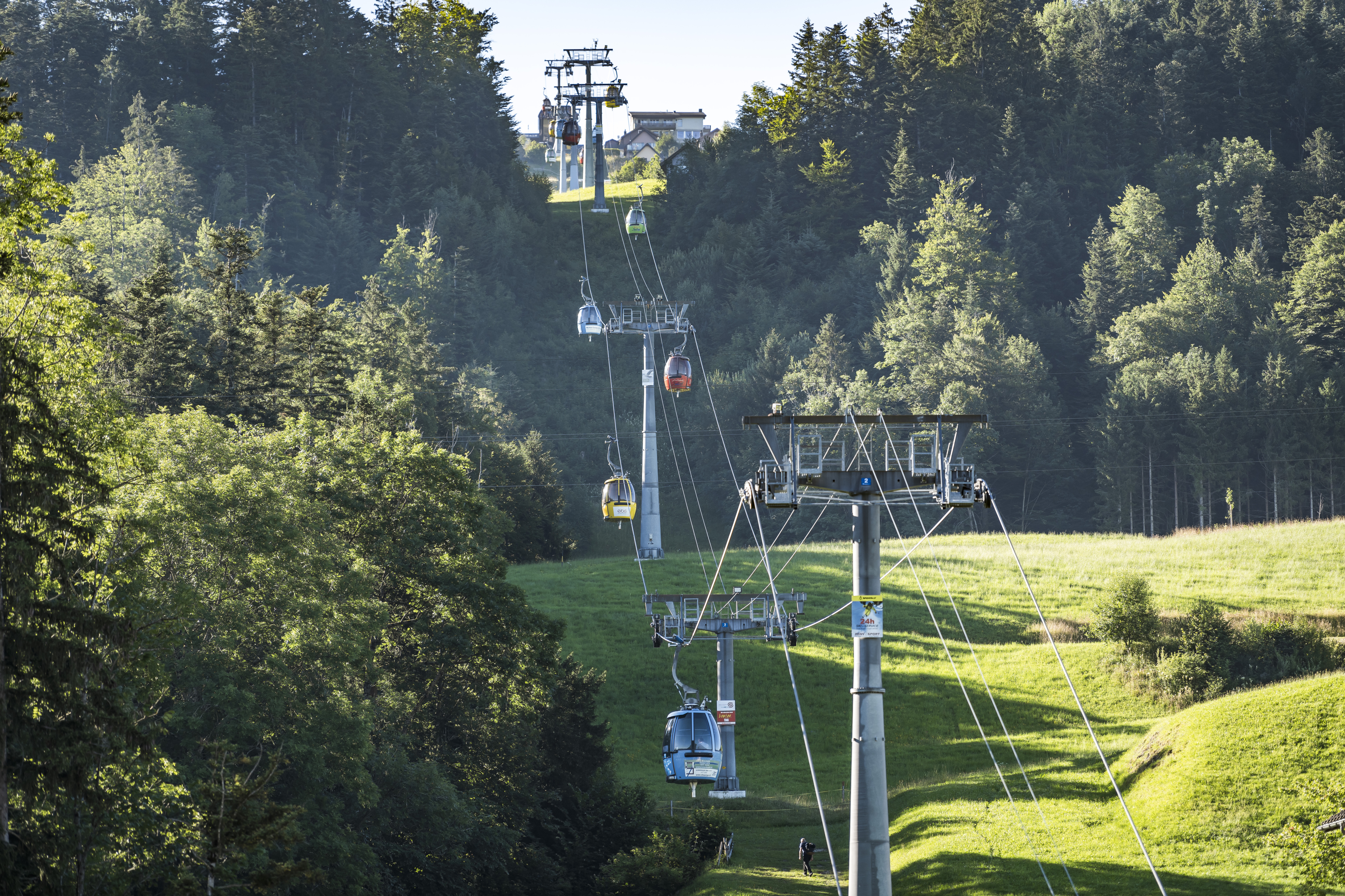 Stuckli Rondo – die erste Drehgondelbahn der Welt bringt Sie in rund acht Minuten von der Talstation in Sattel zum Mostelberg. Geniessen Sie das Panorama, während sich die Gondel ganz langsam um die eigene Achse dreht. Es finden acht Personen Platz. Der ebenerdige Einstieg ist ideal für alle.
