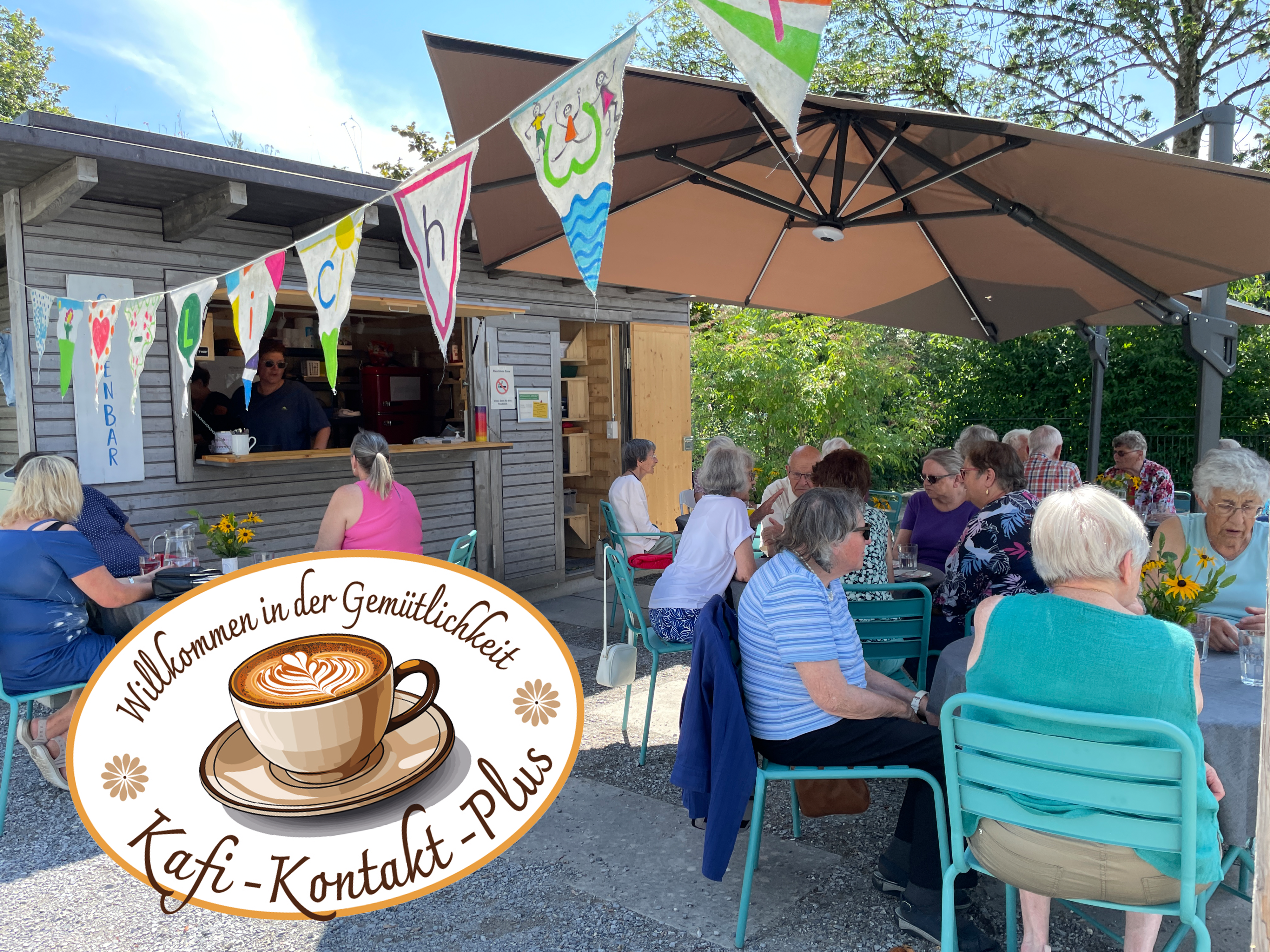 Bei schönem Wetter sind zwei Tische im Chilepark reserviert. Sollte das Wetter nicht mitspielen, ist das Kafi-Kontakt-Plus im Chiletreff anzutreffen.
